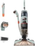 Effectively removes stains and spills from carpets, upholstery, and stairs using a triple-action system that sprays, scrubs, and vacuums in one go.