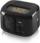 Compact 1.5L capacity with a powerful 1000W heating element and adjustable thermostat from 70ºC to 190ºC for precise frying.