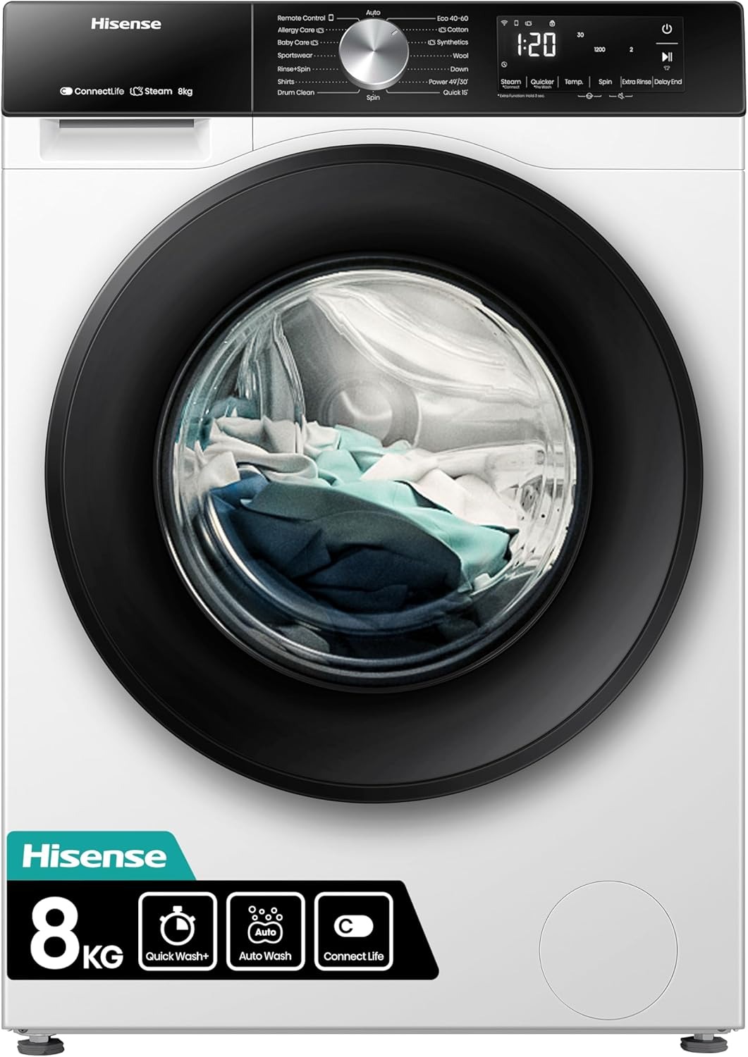 8kg capacity and 1400rpm spin speed provide a balance of load size and fast, efficient drying performance.